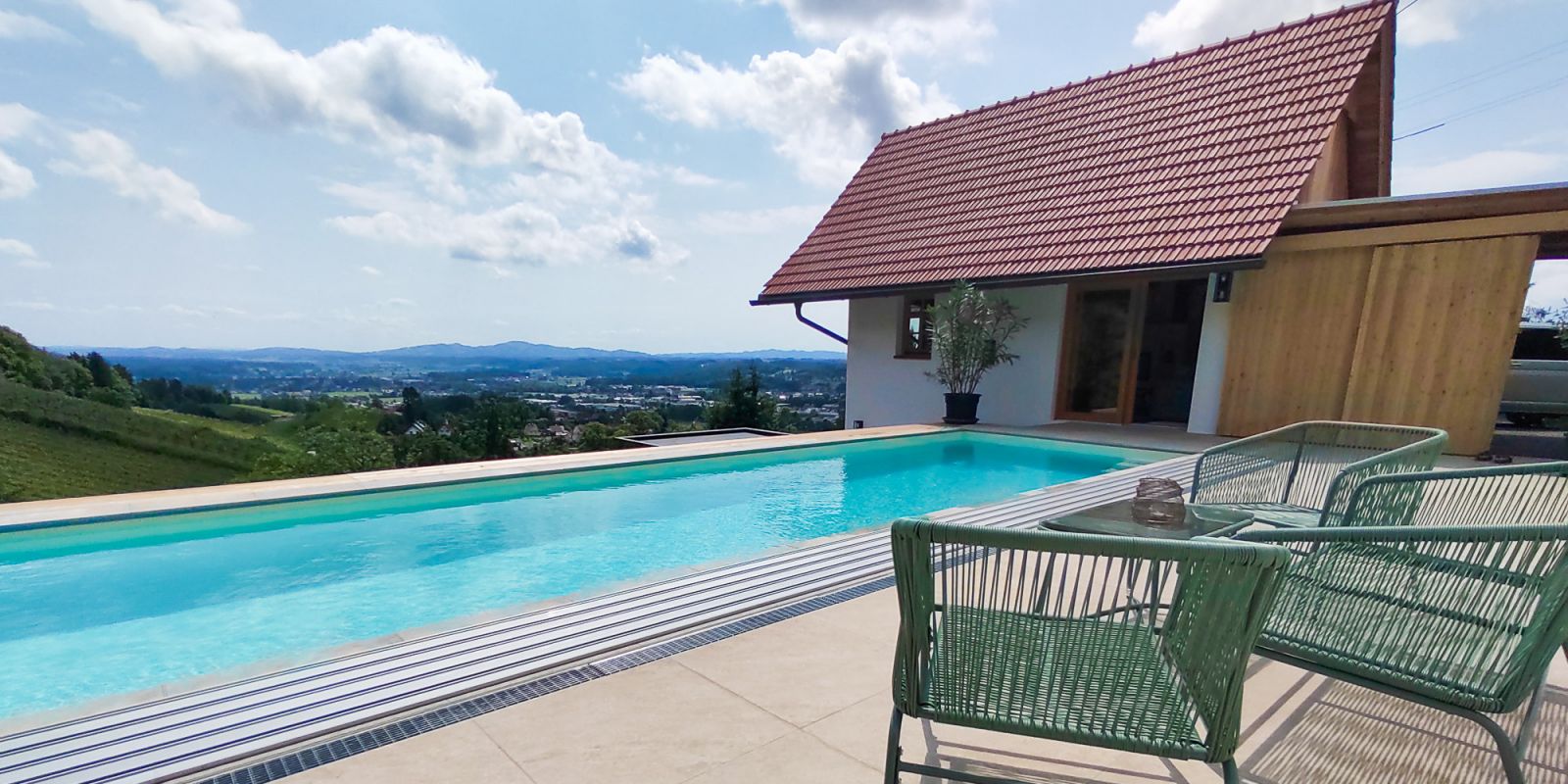 Sie möchten in der Schilchergegend mit dem milden Klima einfach nur relaxen, sich erholen, einen wunderbaren Ausblick genießen, sich einen Koch bestellen, der Sie kulinarisch verwöhnt, schwimmen, in die Sauna gehen oder den Abend bei einem Glas Wein im Whirlpool ausklingen lassen?